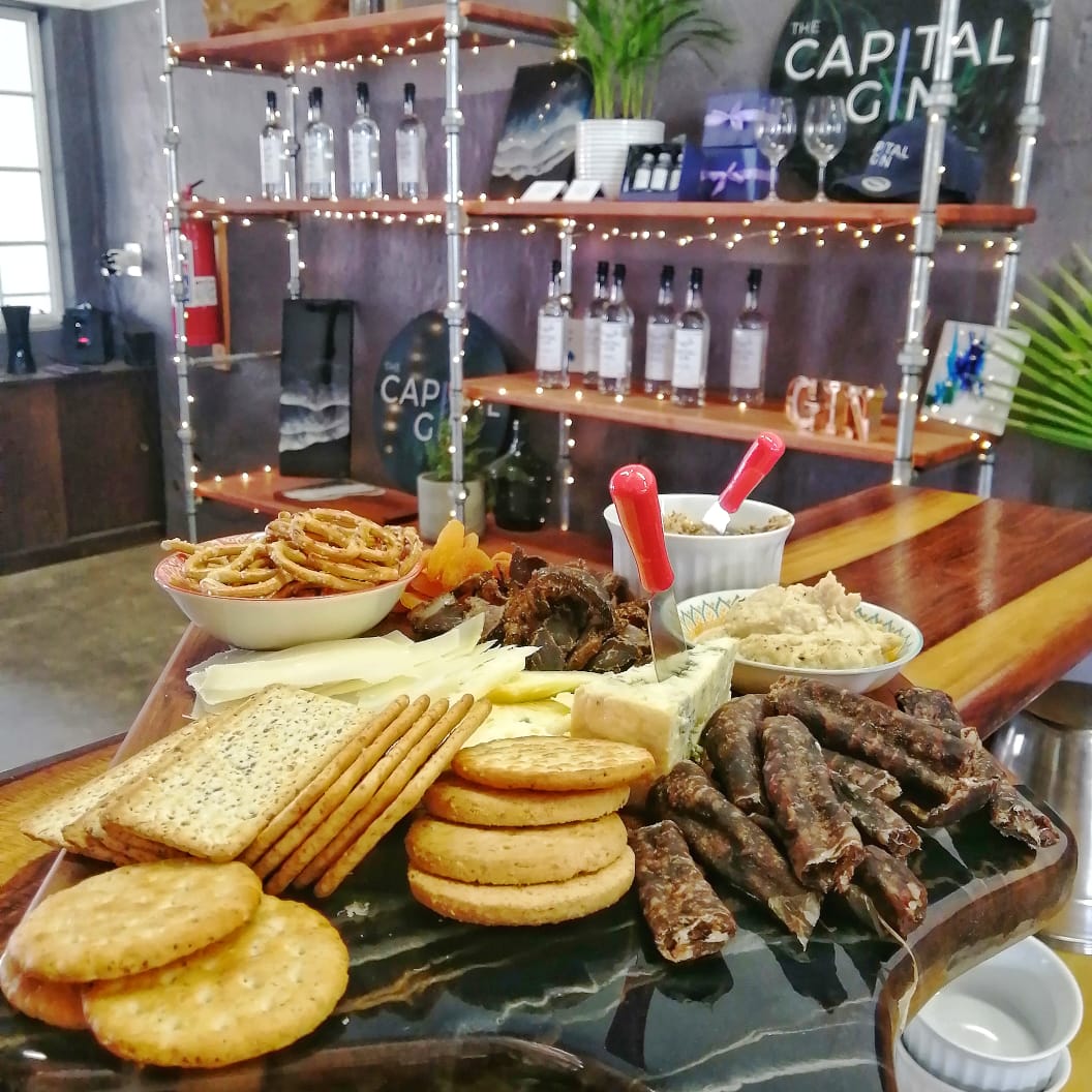 Tim Haak A great combination of cheese, biltong and biscuits to compliment the gin tasting.